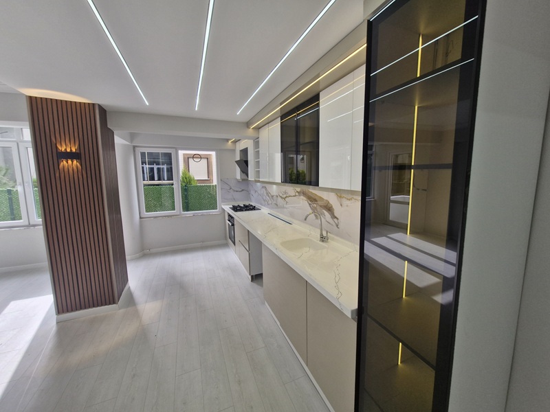 kullanım alanına sahip mülkümüz; şık açık mutfağı, hazır ankastre seti ve