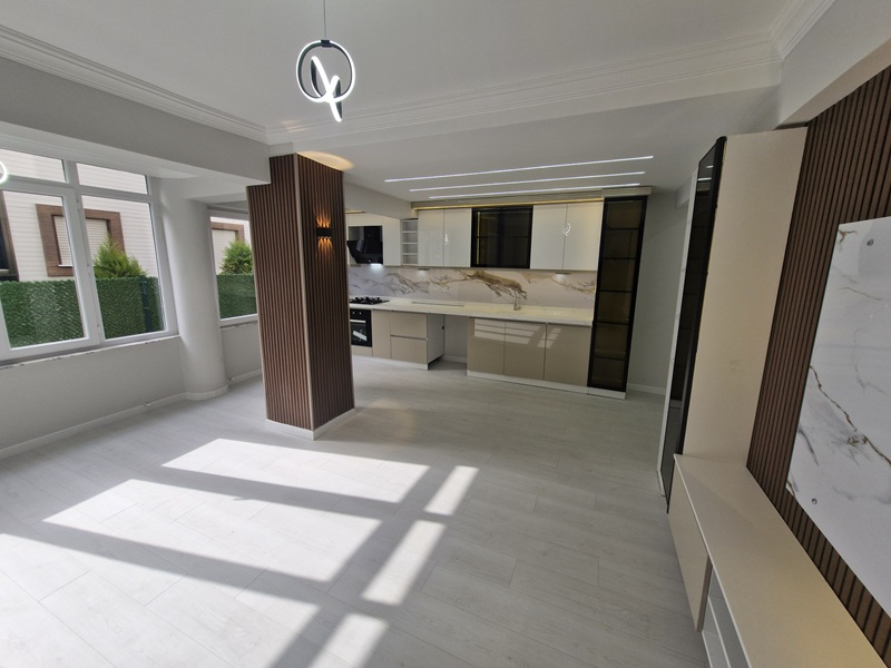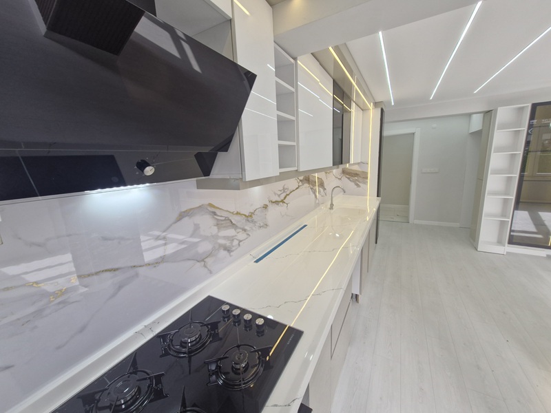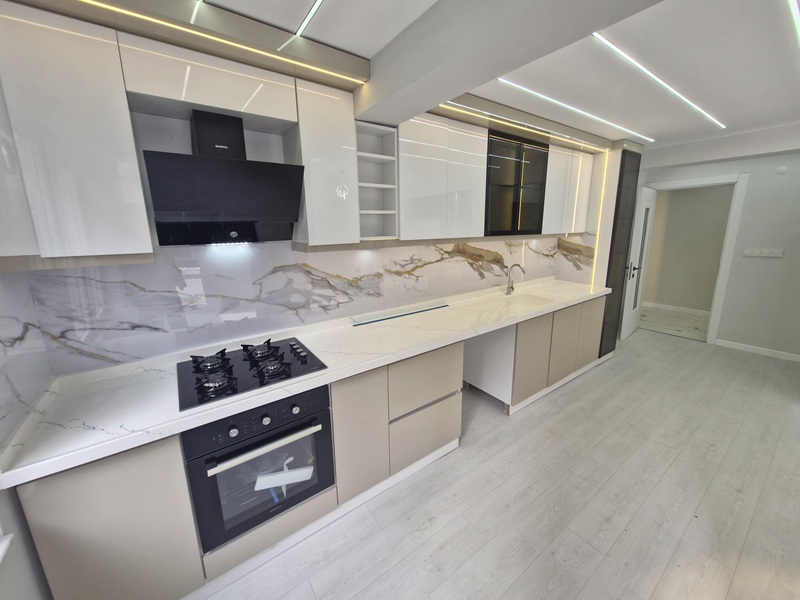kullanım alanına sahip mülkümüz; şık açık mutfağı, hazır ankastre seti ve